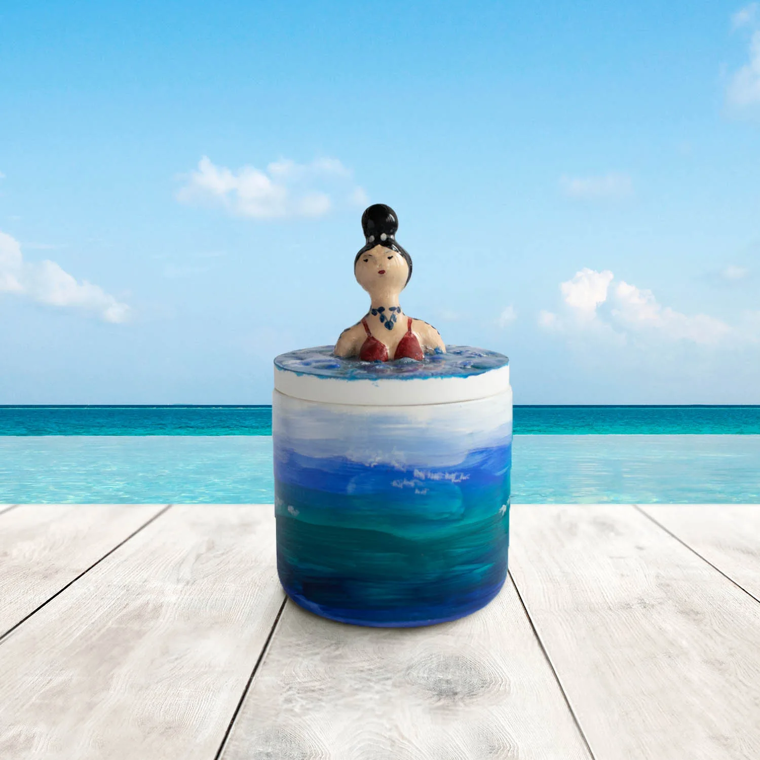 La Niznaika fiecare produs este unicat, fiecare recipient are o poveste și este creat pentru o călătorie a ta într-un spațiu special. Recipientul Breezy este turnat manual și apoi accesorizat cu elemente modelate din lut, pictate și acoperite cu rășină pentru o mai bună rezistență în timp.