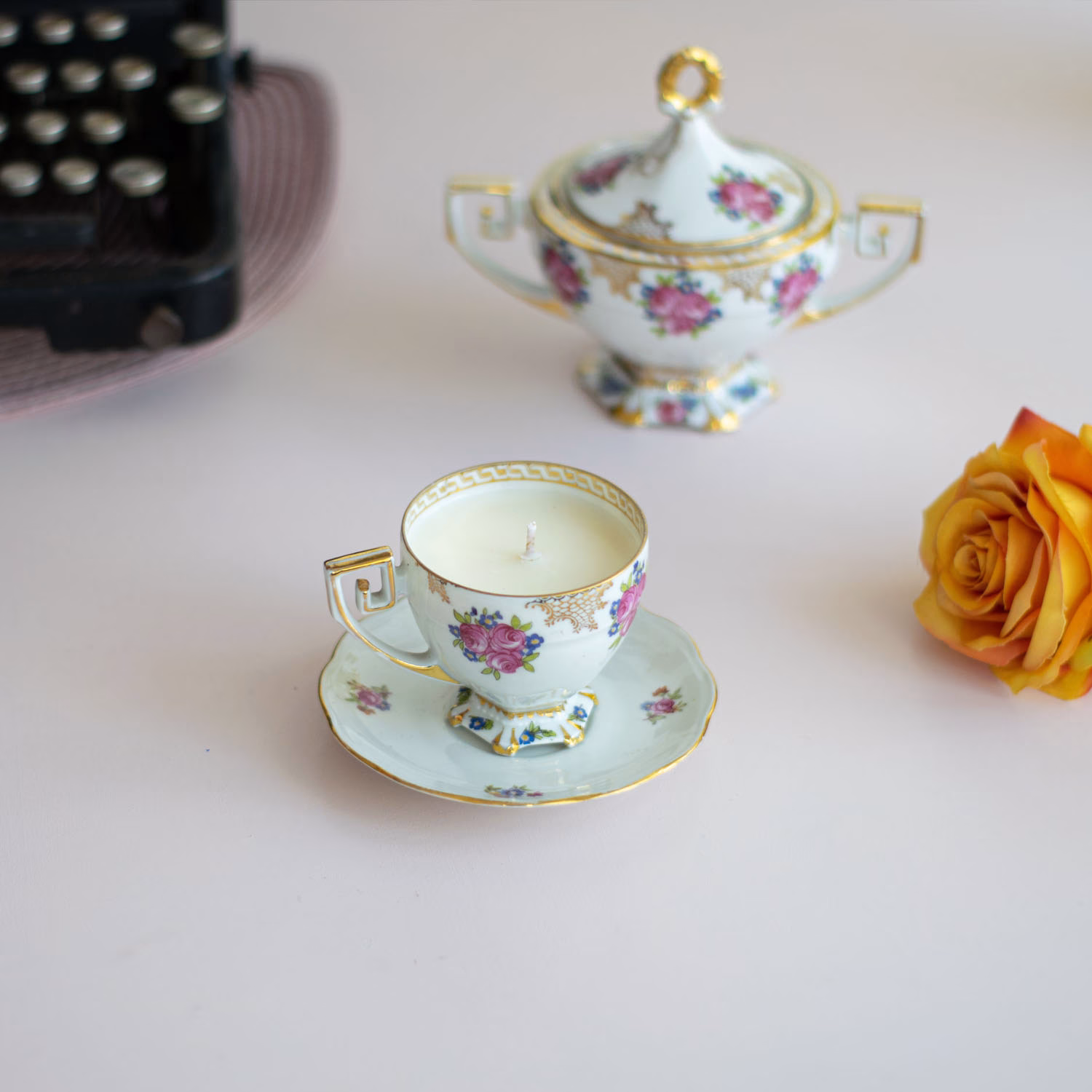 Da, ceașca de porțelan poate fi reutilizată ca obiect decorativ sau recipient pentru lumânare parfumată.