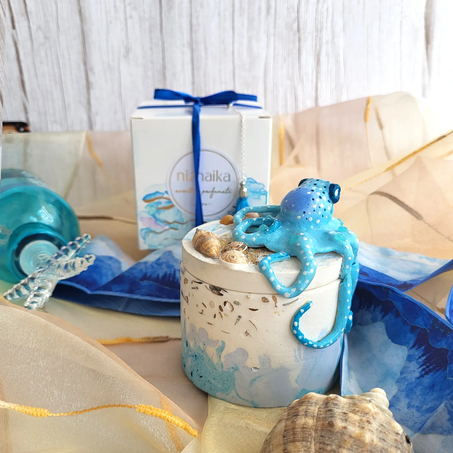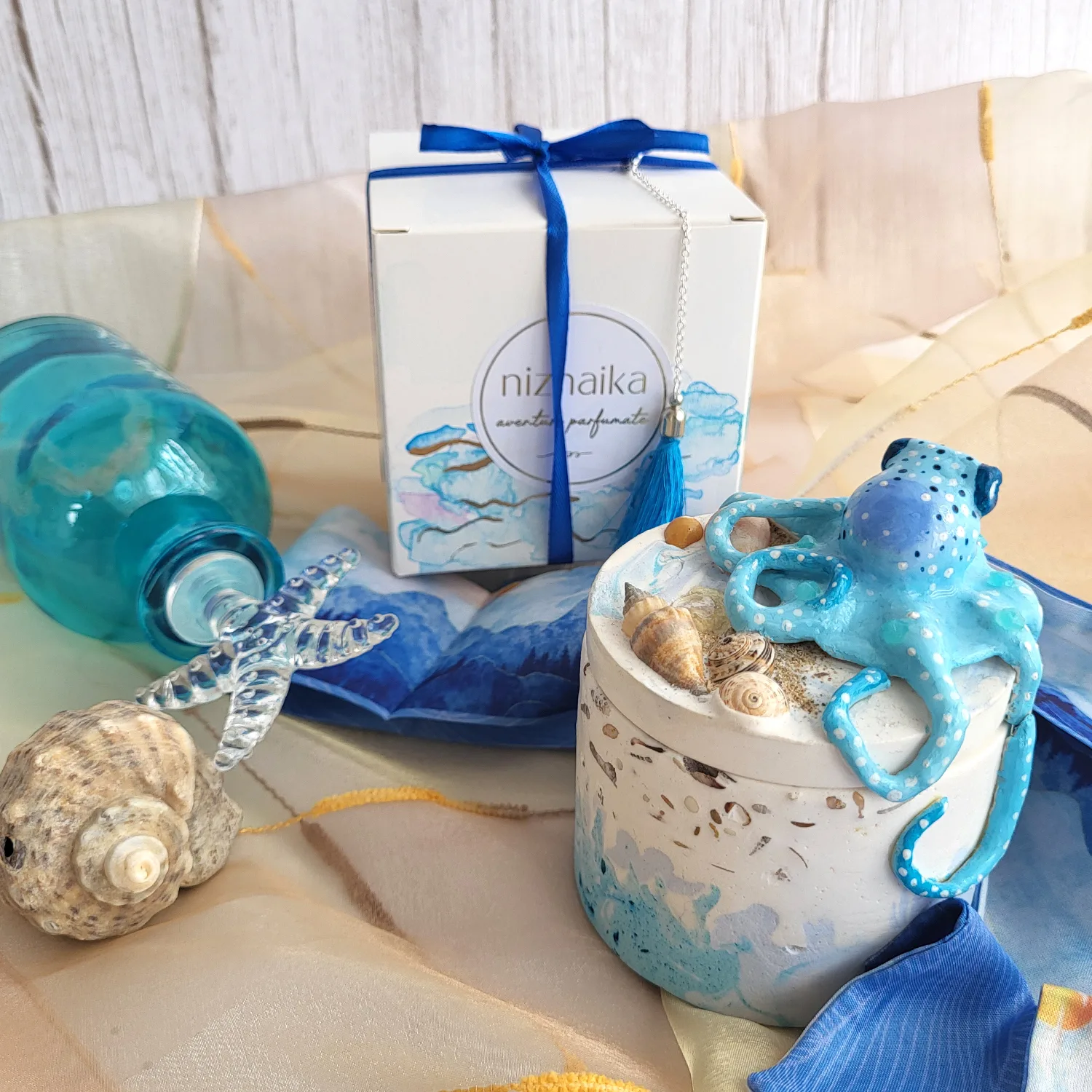 La Niznaika fiecare produs este unicat, fiecare recipient are o poveste și este creat pentru o călătorie a ta într-un spațiu special. Recipientul Marina este turnat manual și apoi accesorizat cu elemente modelate din lut, scoici și nisip culese cu bucurie de pe plajele din Cipru ale Mării Mediterane.