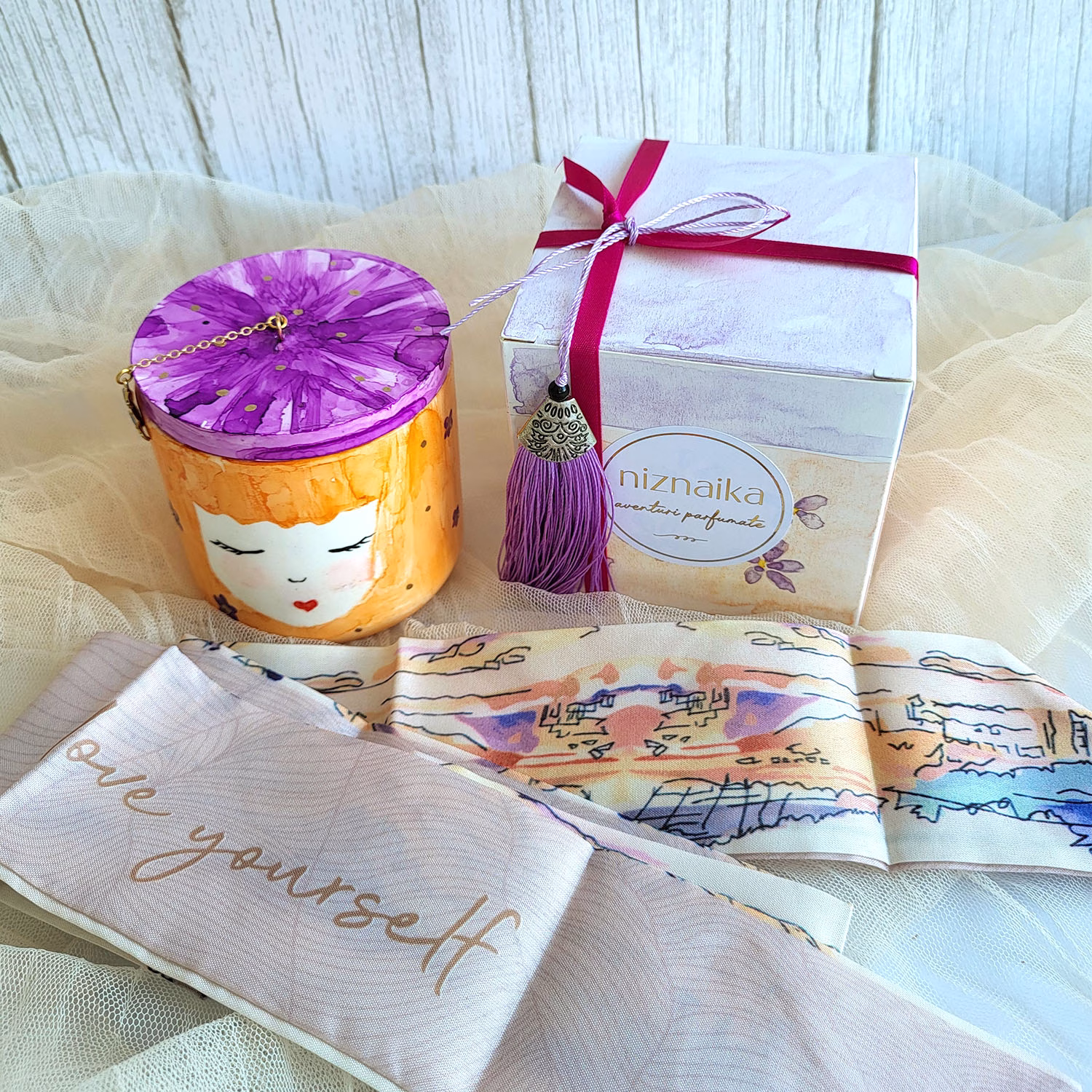 • lumânarea parfumată pictată Niznaika 1 în recipient unicat,