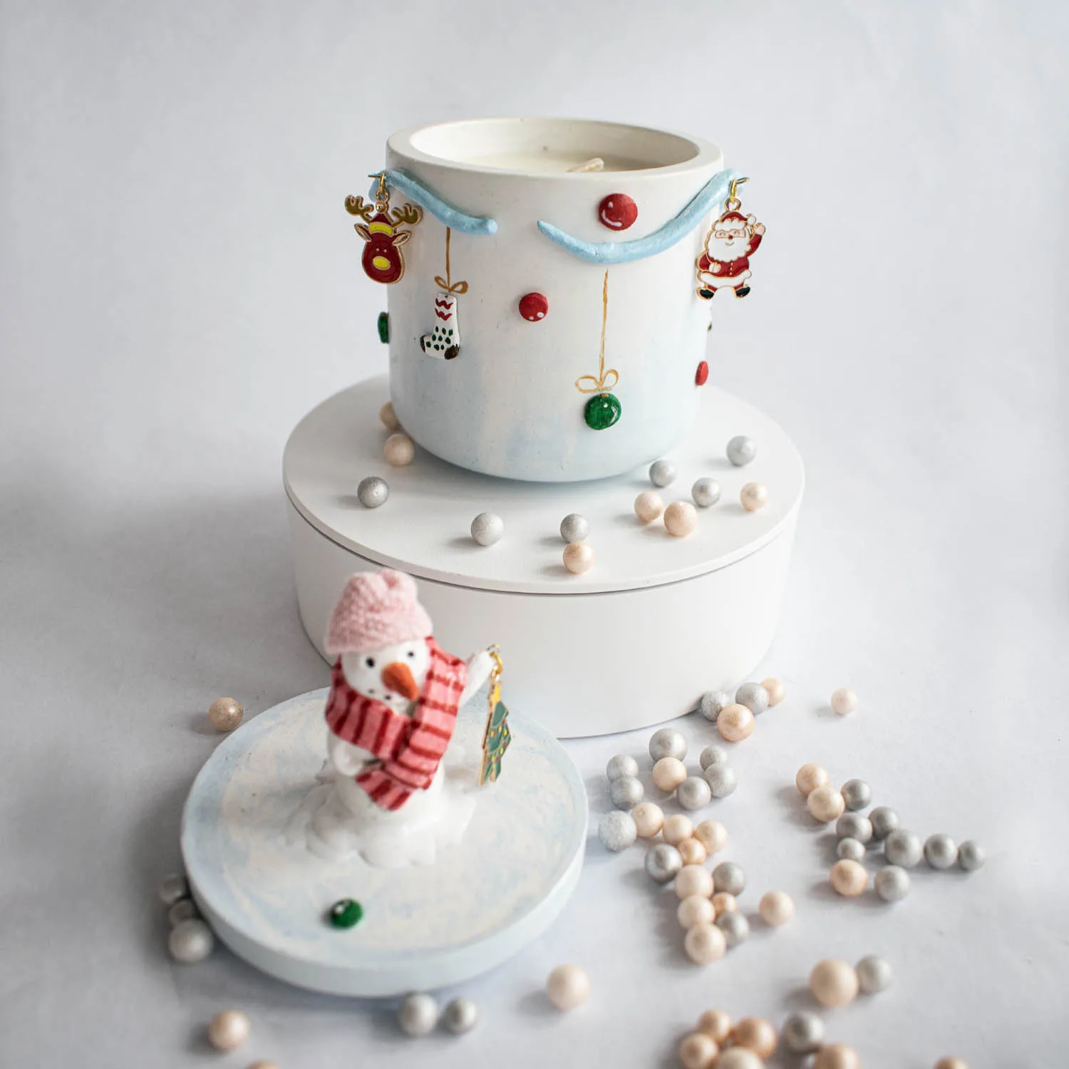 Lumânare parfumată Snowman din ceară de soia 100%, turnată manual în recipient unicat din material ceramic.